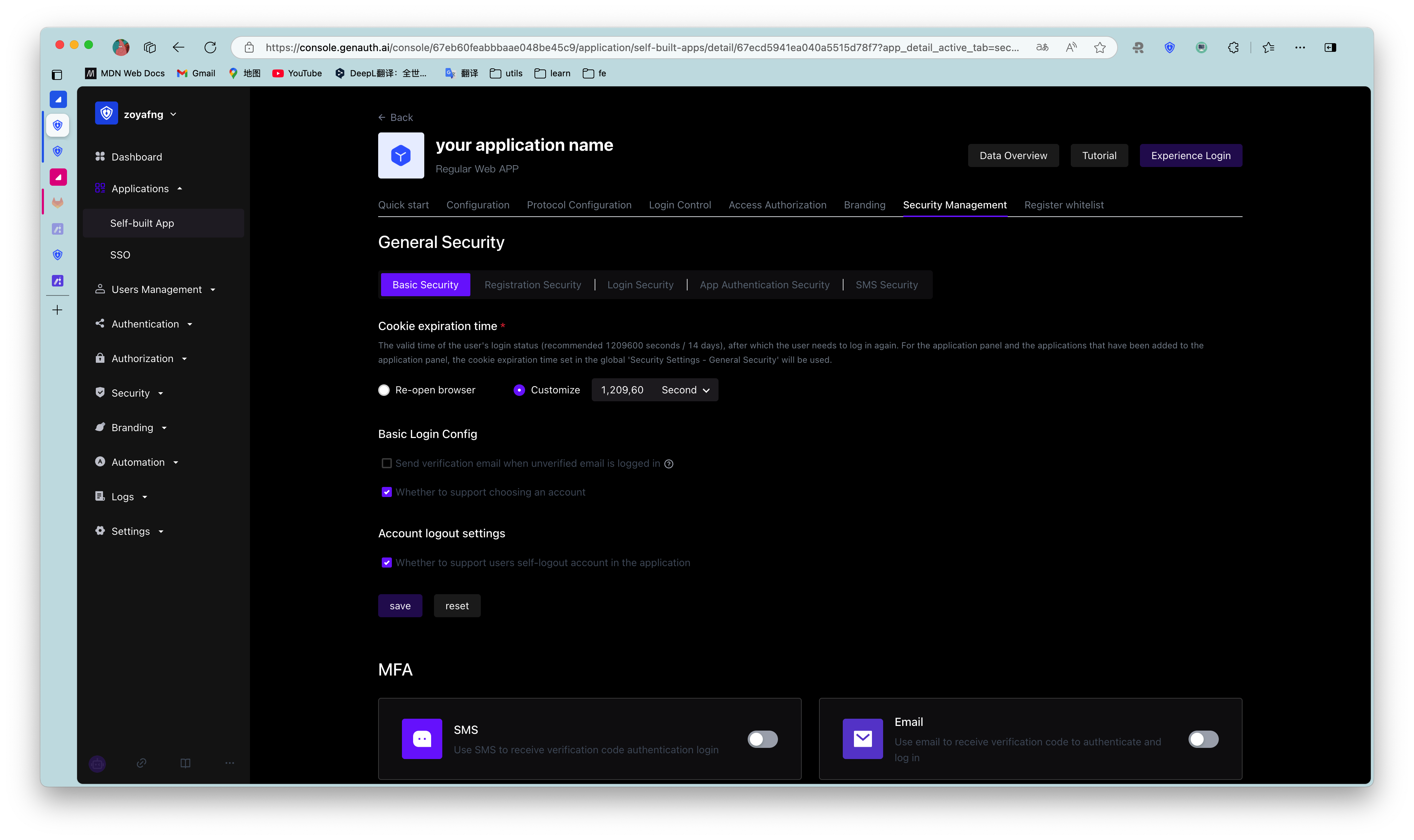Path: Application->Self-built Application->Application Details->Security Management