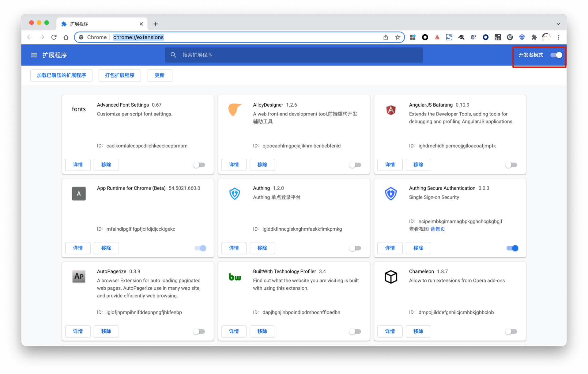 Enter chrome://extensions/ in the Chrome browser address bar, enter the plugin management interface, and turn on "Developer Mode".