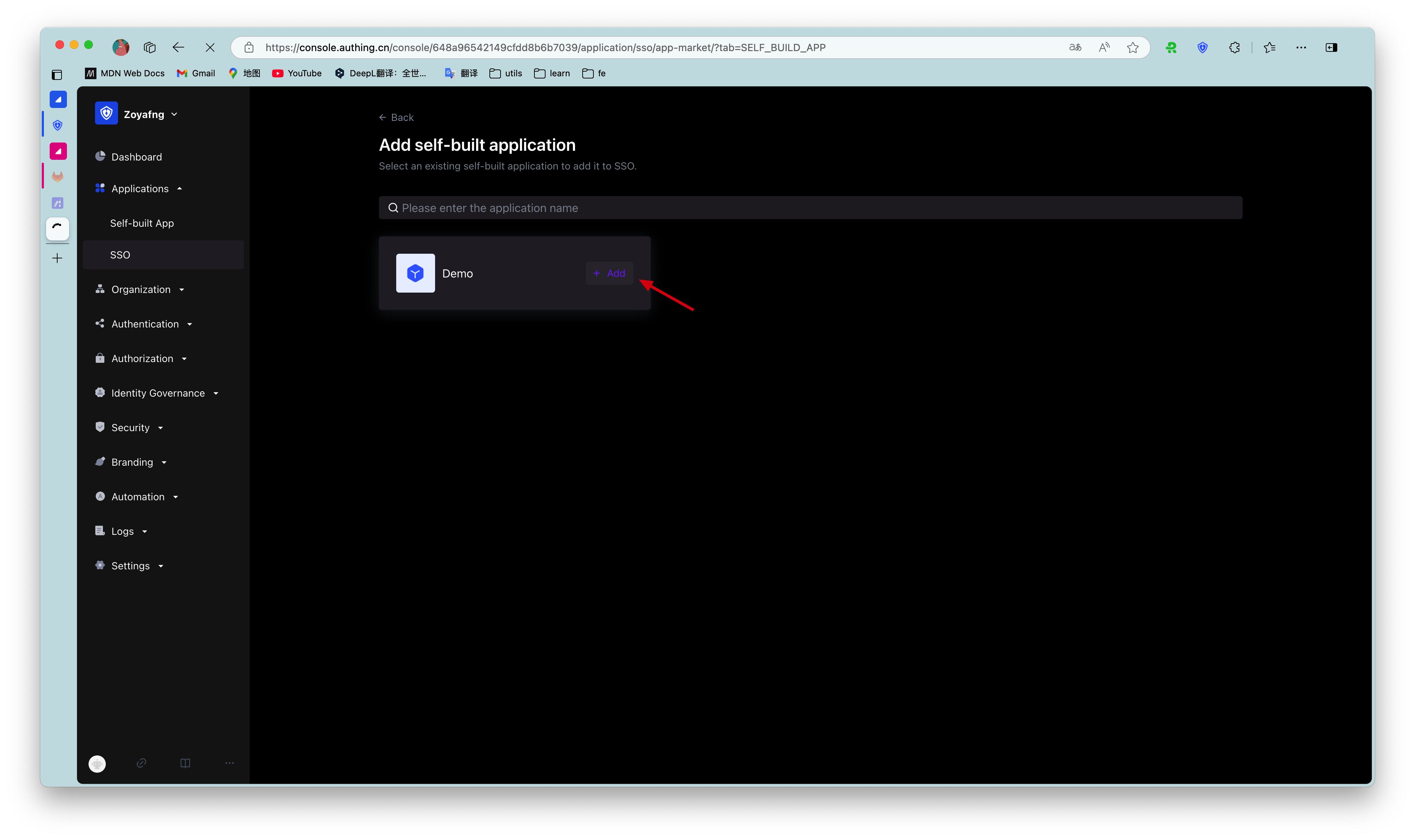 Users enter the "Single Sign-On SSO" page and add the self-built application just now.