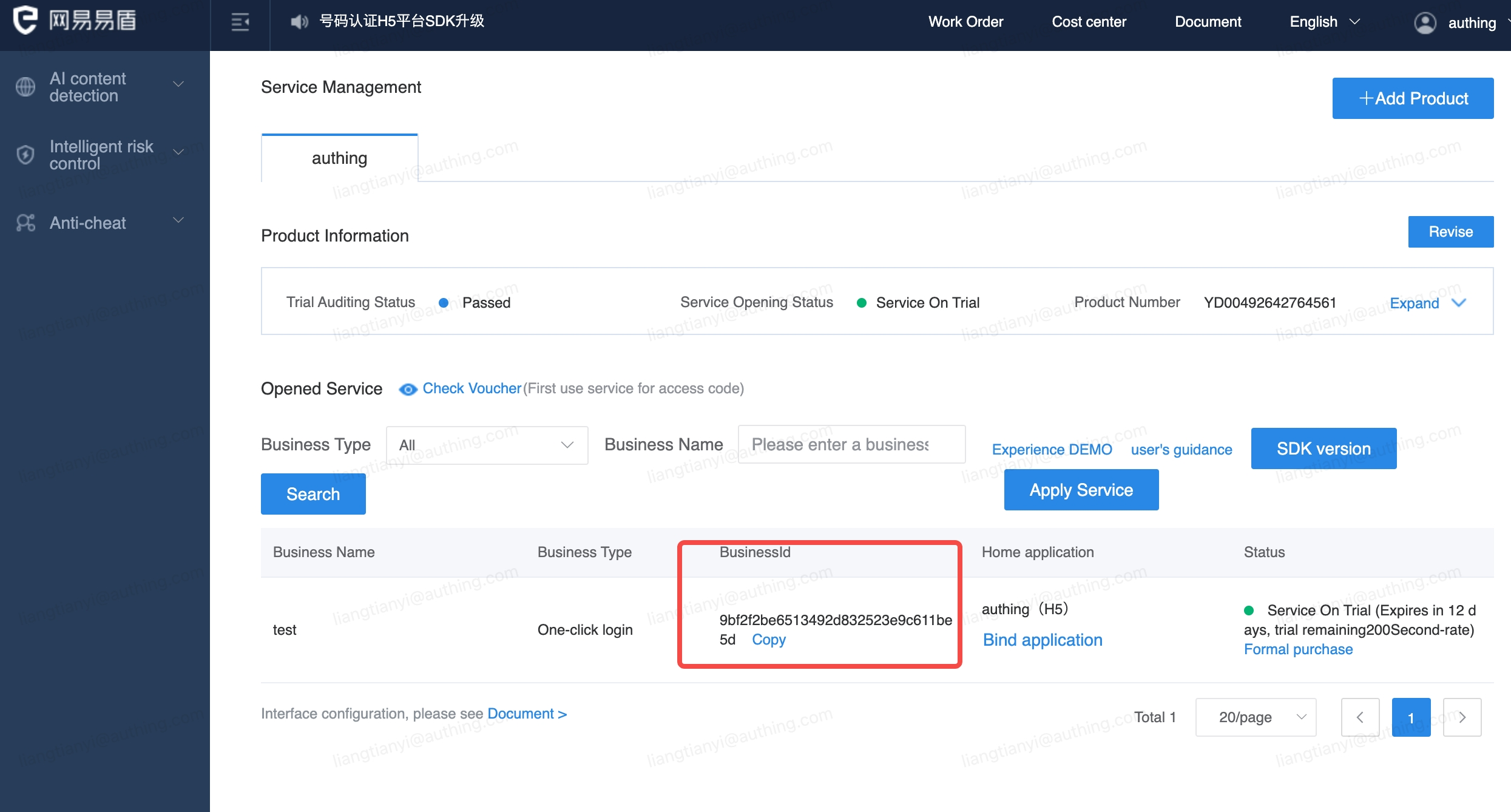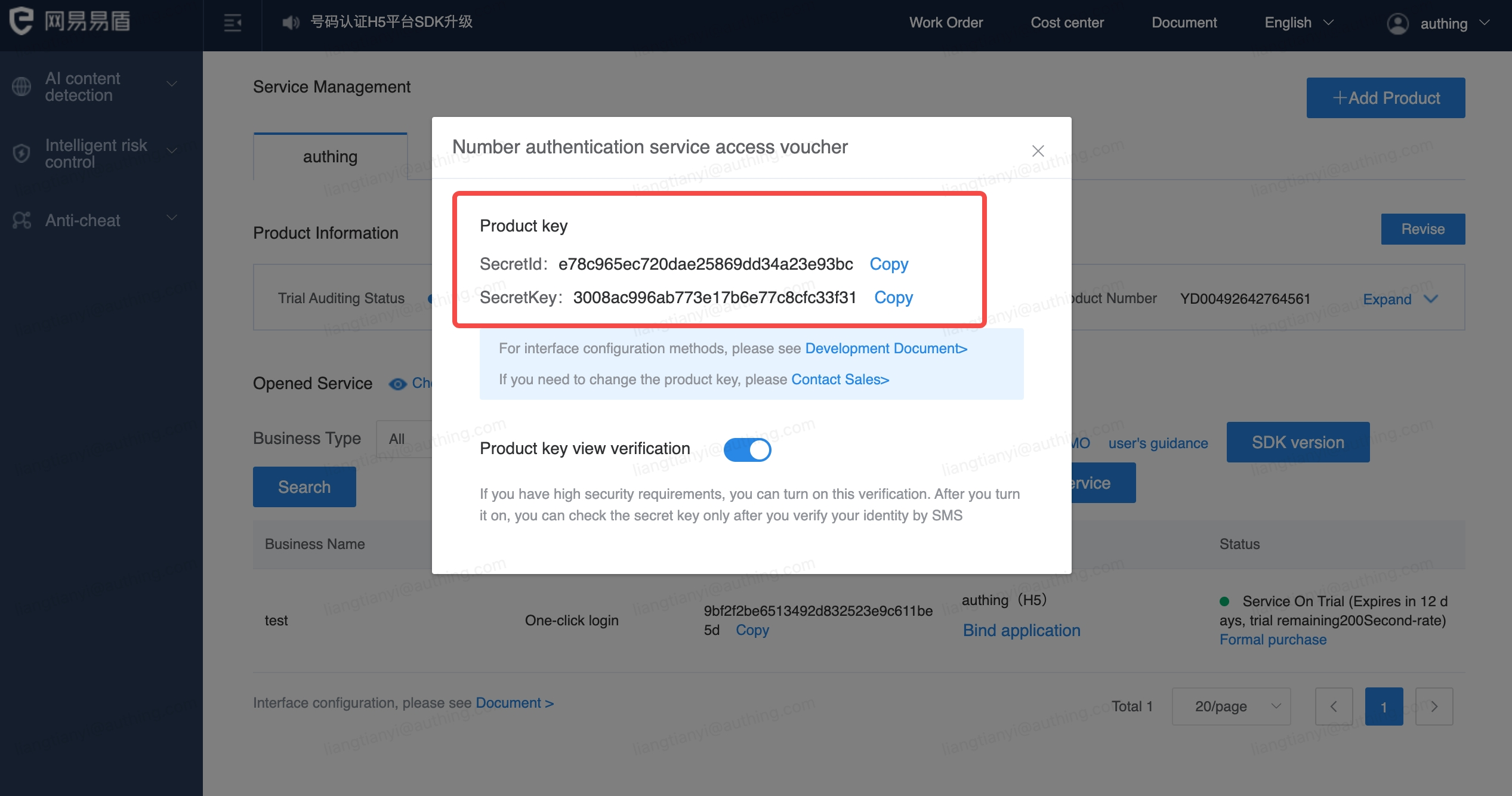 Copy business ID, SecretId, SecretKey