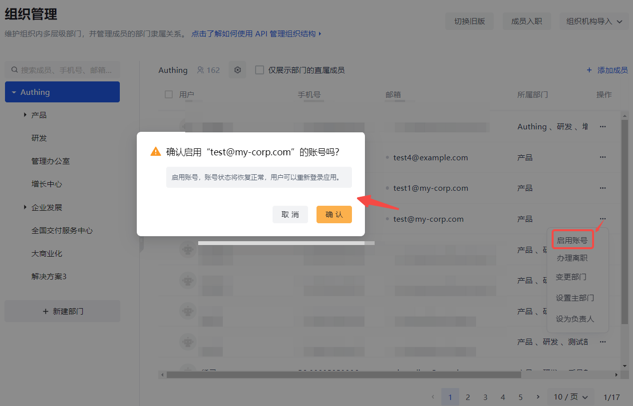 After confirming safety, you can activate the account in the same path. Then the account permissions will return to normal.