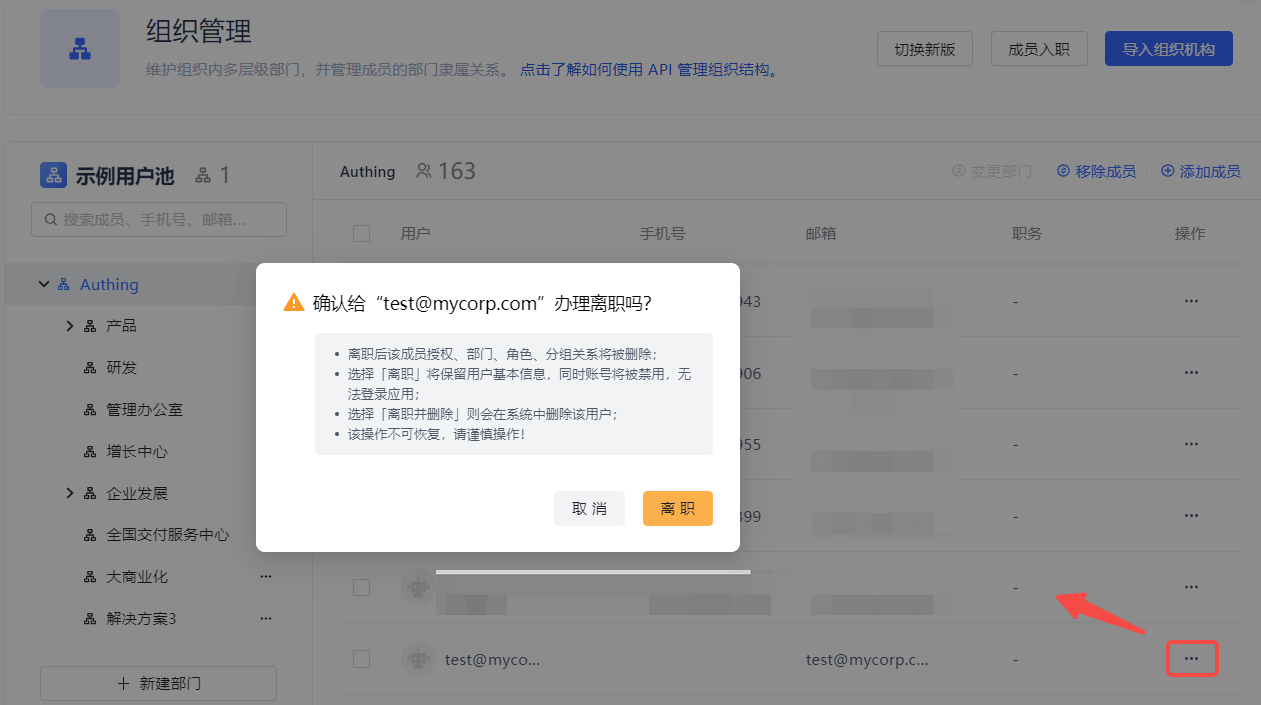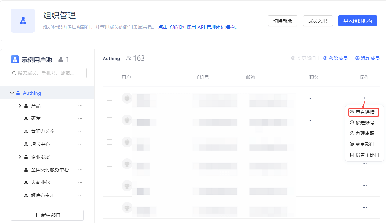 Click the View Details button of an employee under the corresponding organizational level to jump to the user's details page in Member Management (for B2B and B2C scenarios, jump to the User List page).