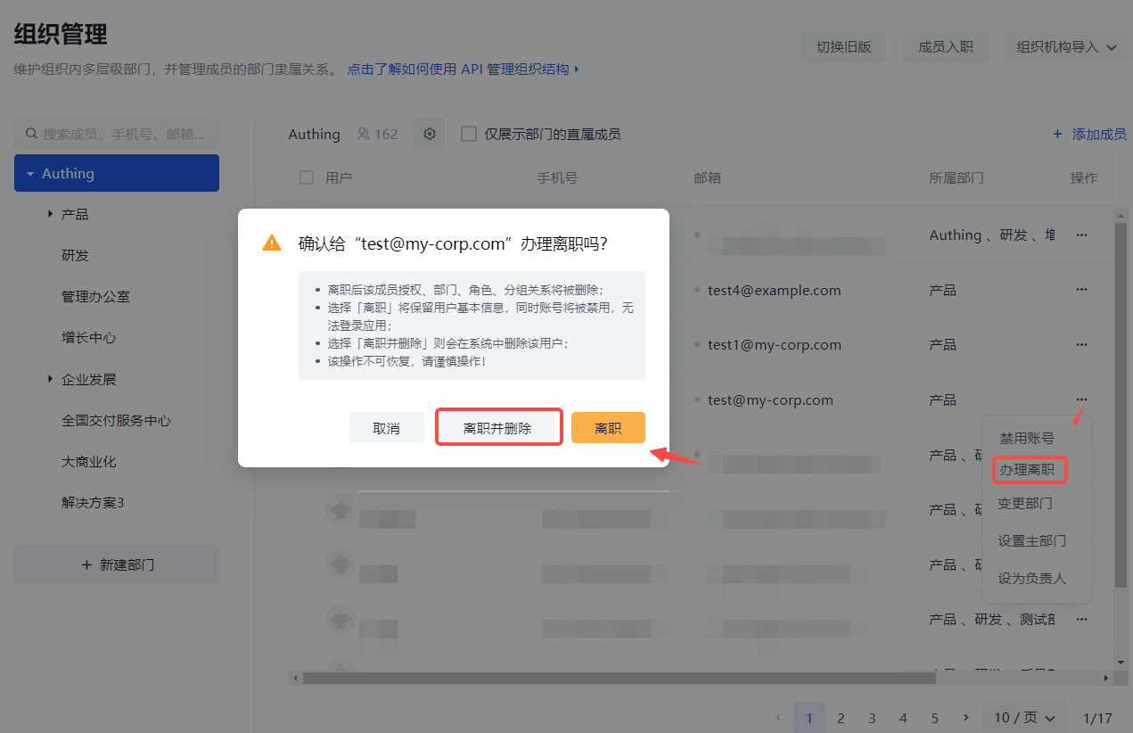 - Keep the basic user information and delete the department, role, and group relationship of the employee.