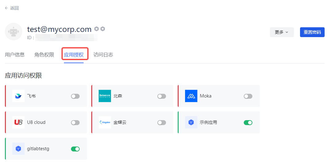 Click on the newly added member in the list to enter the user details page, where you can grant role authorization and application authorization: