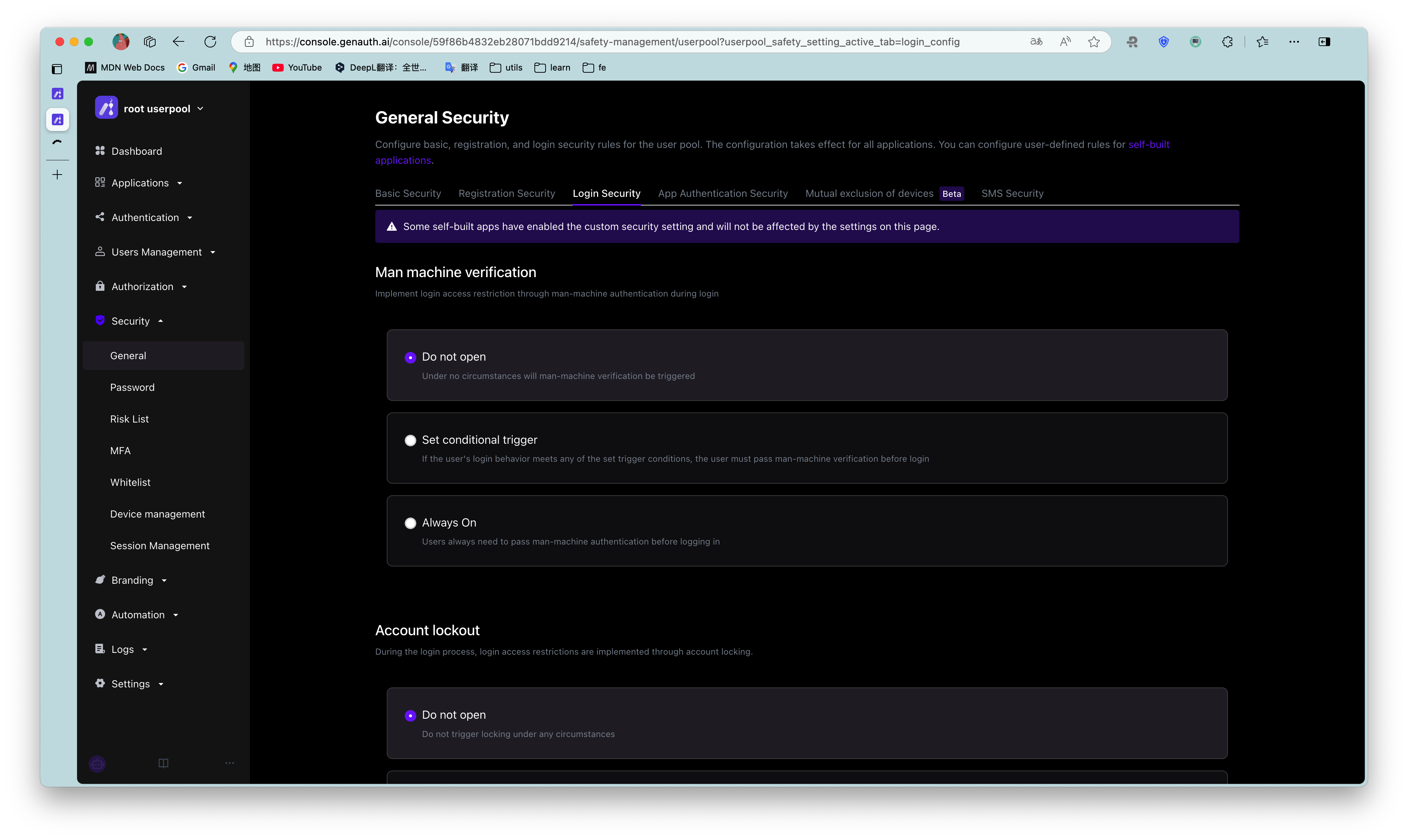 You can turn on the Login Failure Limit switch in the console to limit the number of failed logins for the same account within a certain number of seconds: