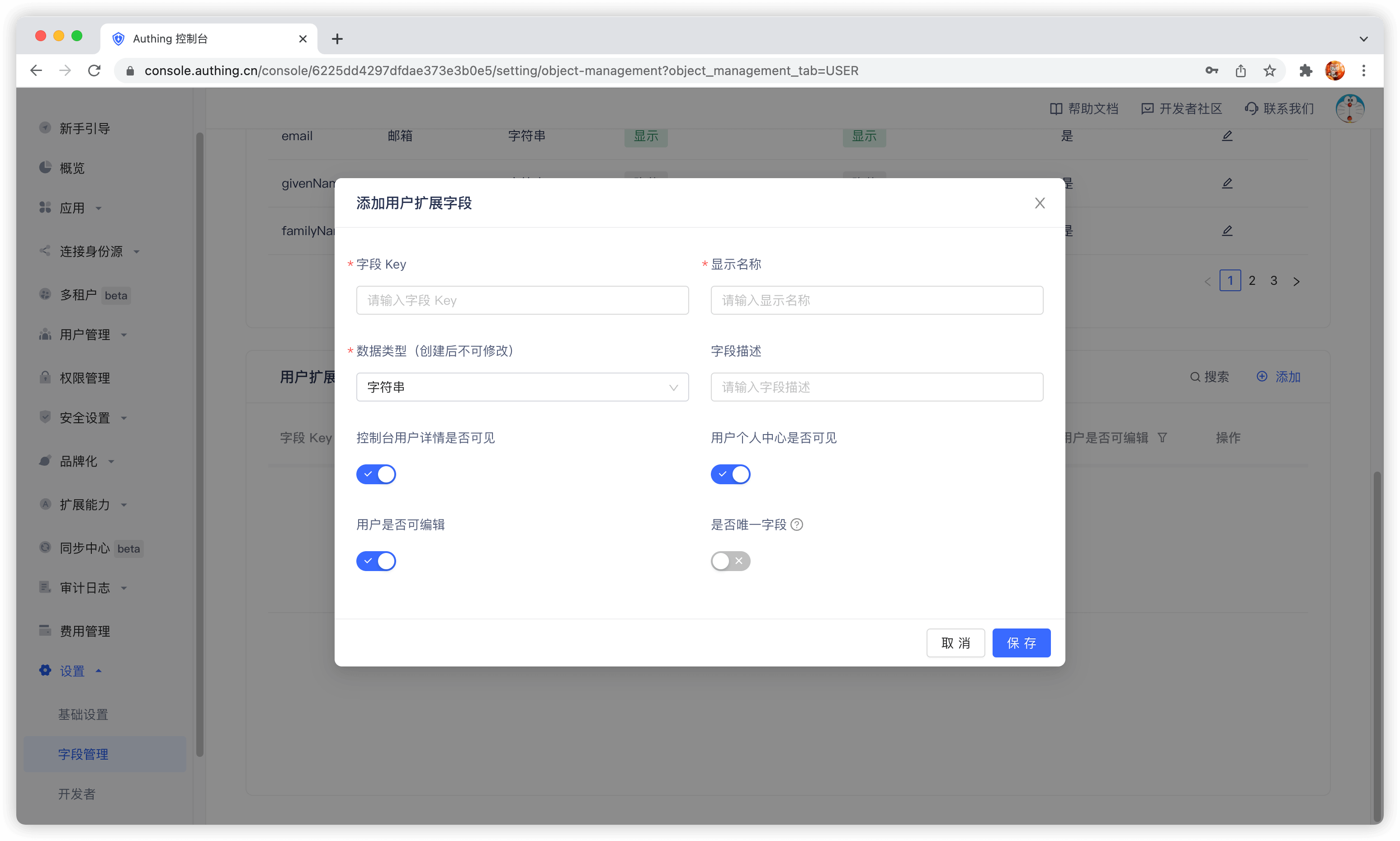 User custom fields are additional fields that can be added to user objects in addition to basic user fields. Developers can store a small amount of business-related data by setting custom fields.