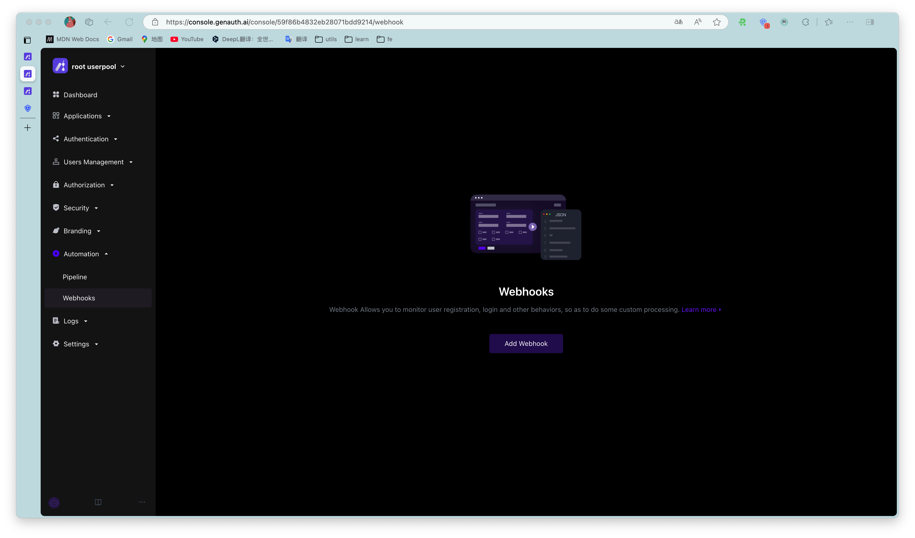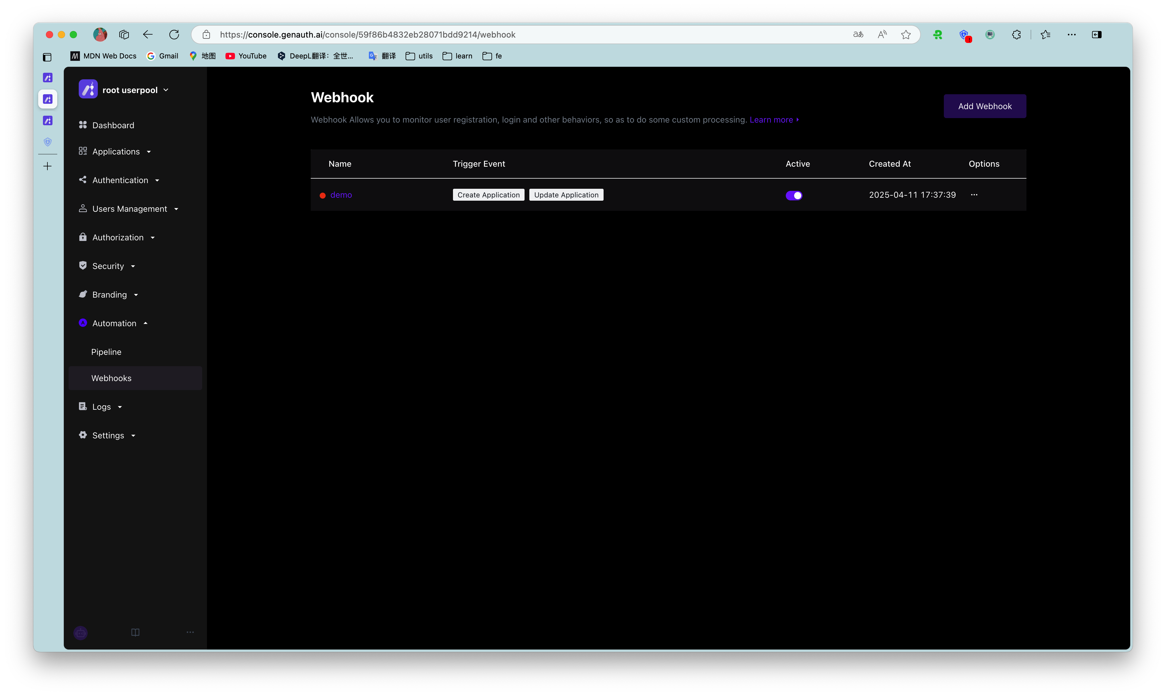 Webhook allows you to monitor user registration, login and other behaviors, so as to do some custom processing on them.