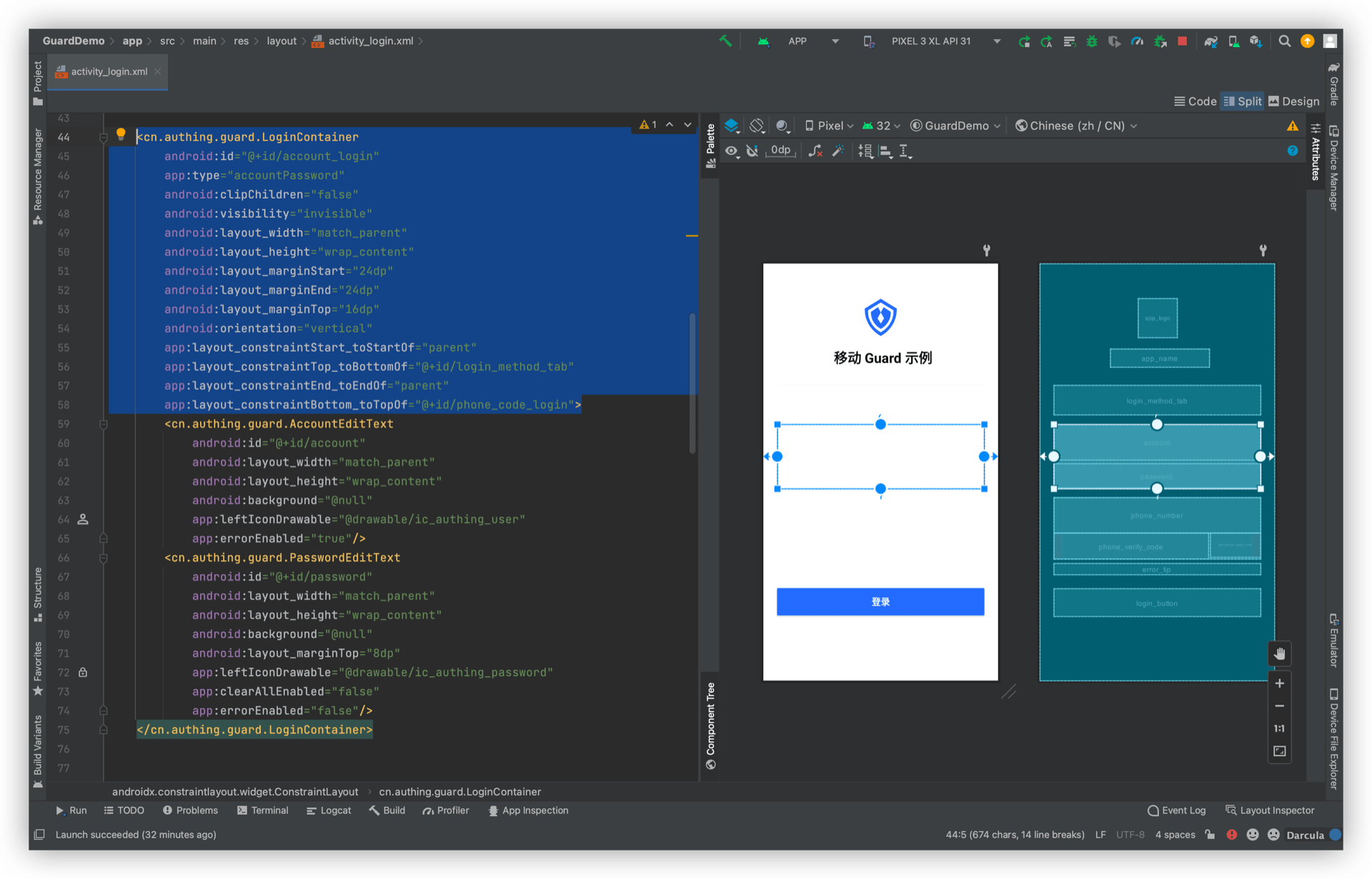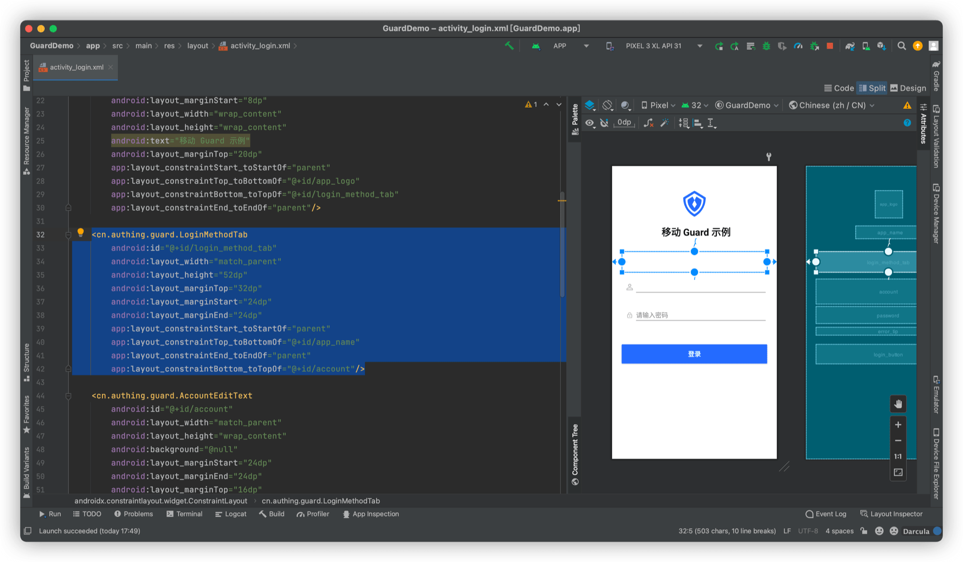 android:text="移动 Guard 示例"