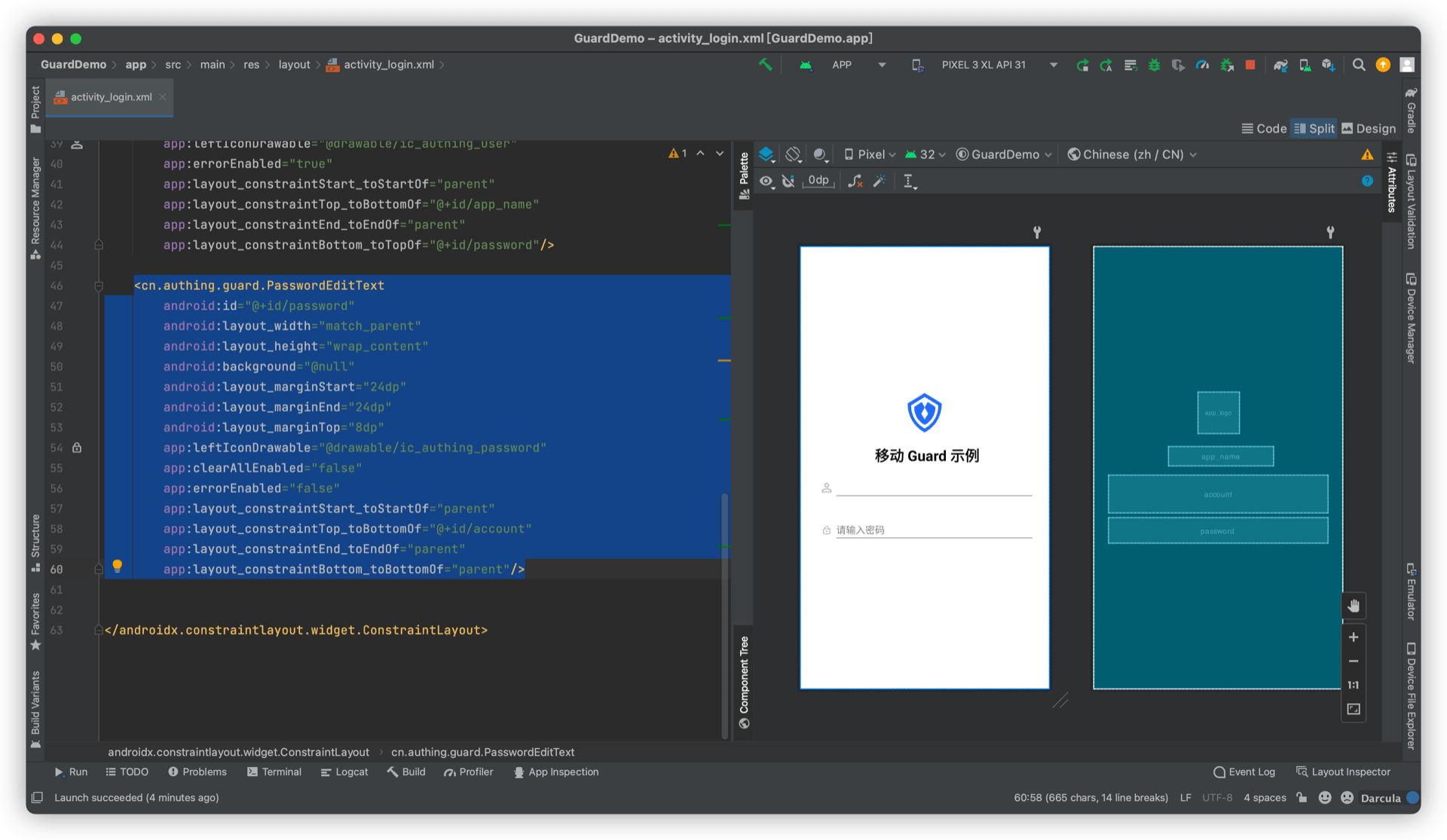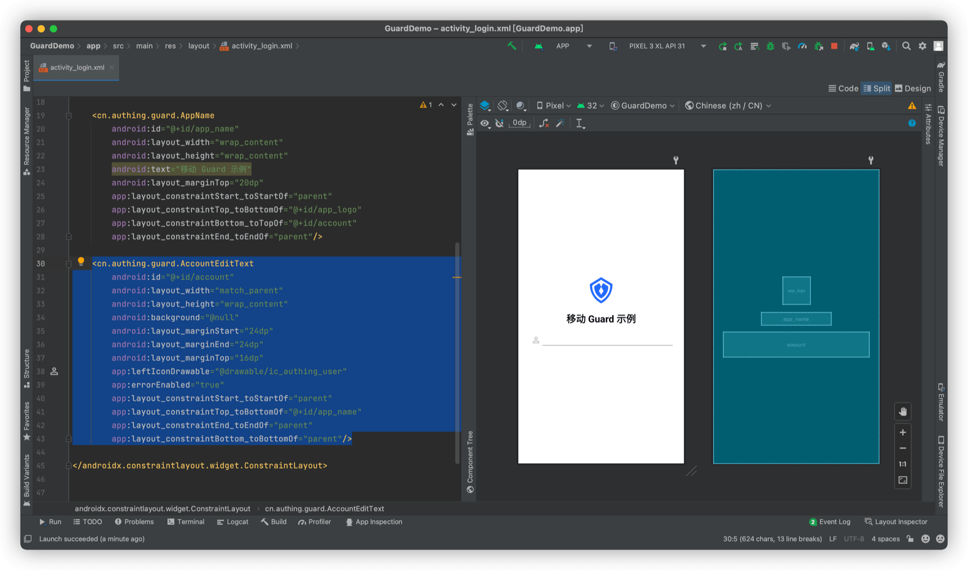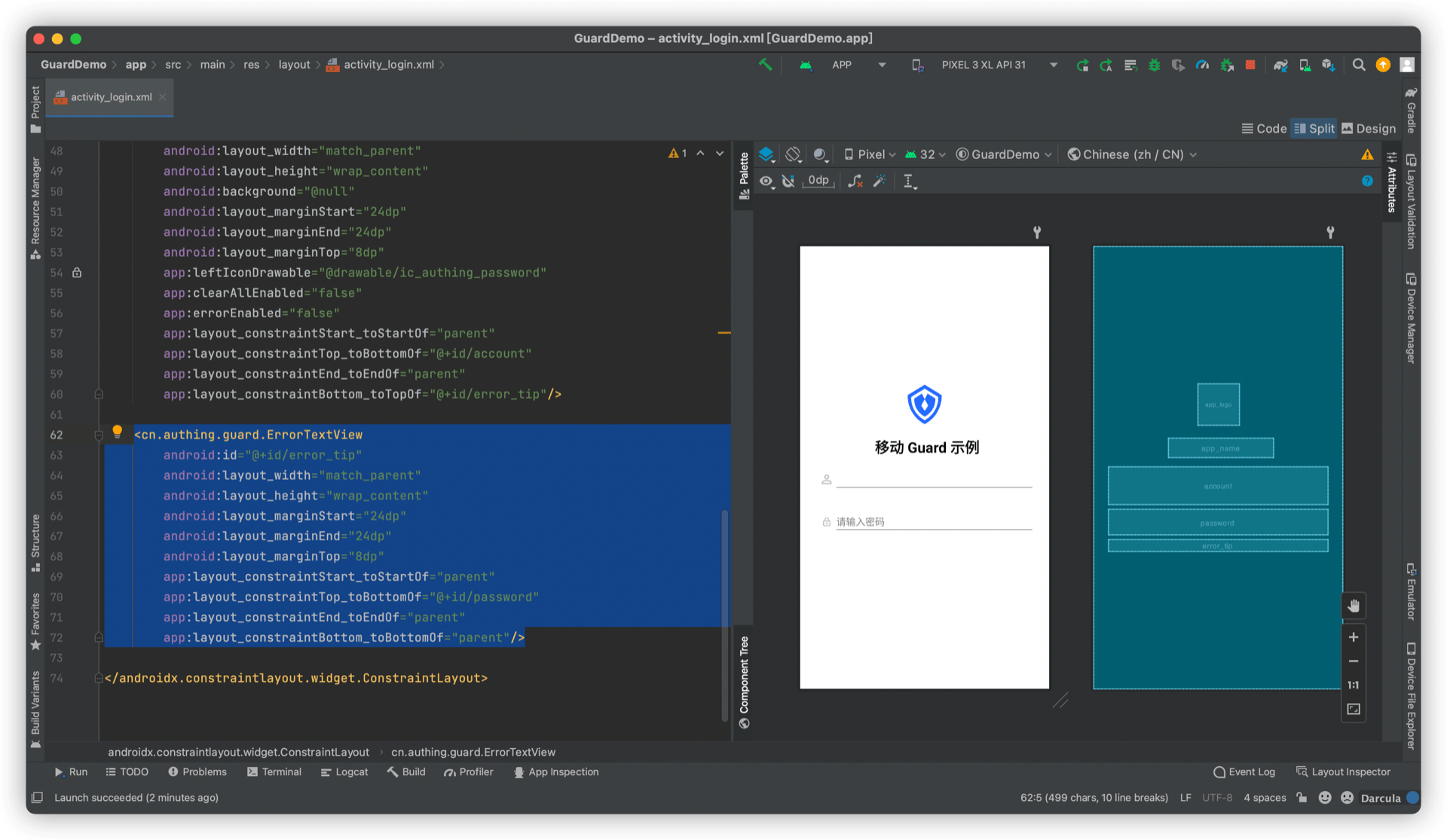 一个具有登录业务能力的界面就开发完了,输入有效的用户名密码,点击登录就可以完成认证。如果登录出现错误,服务器返回的错误信息也能直接显示在 ErrorTextView 上。