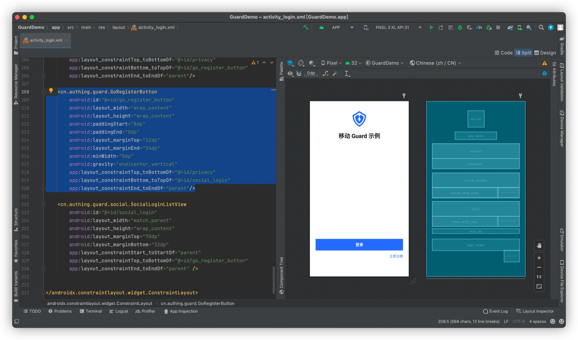 在自定义的登录布局中放置 GoRegisterButton