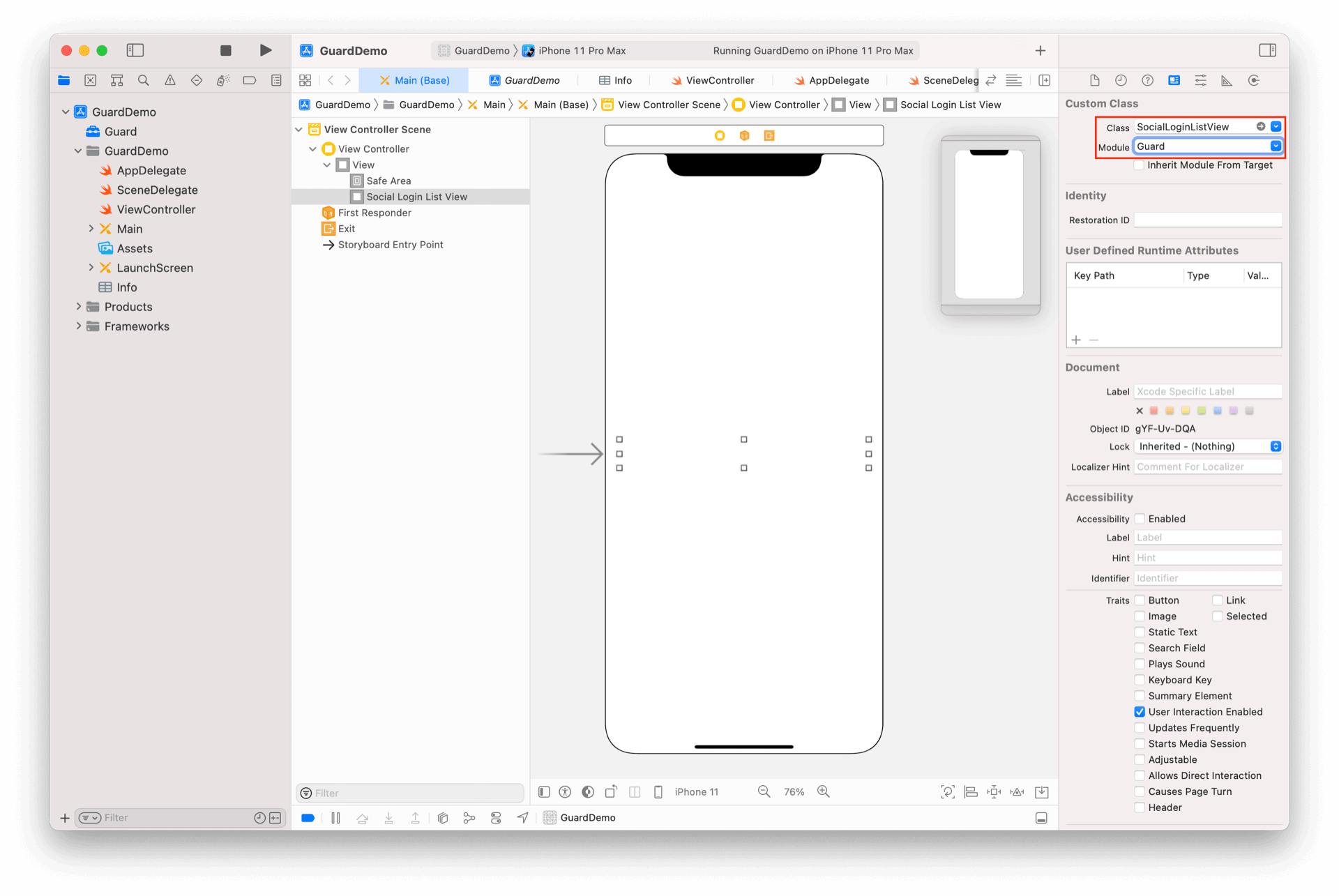 放置一个 UIView,并将其类型改为 SocialLoginListView