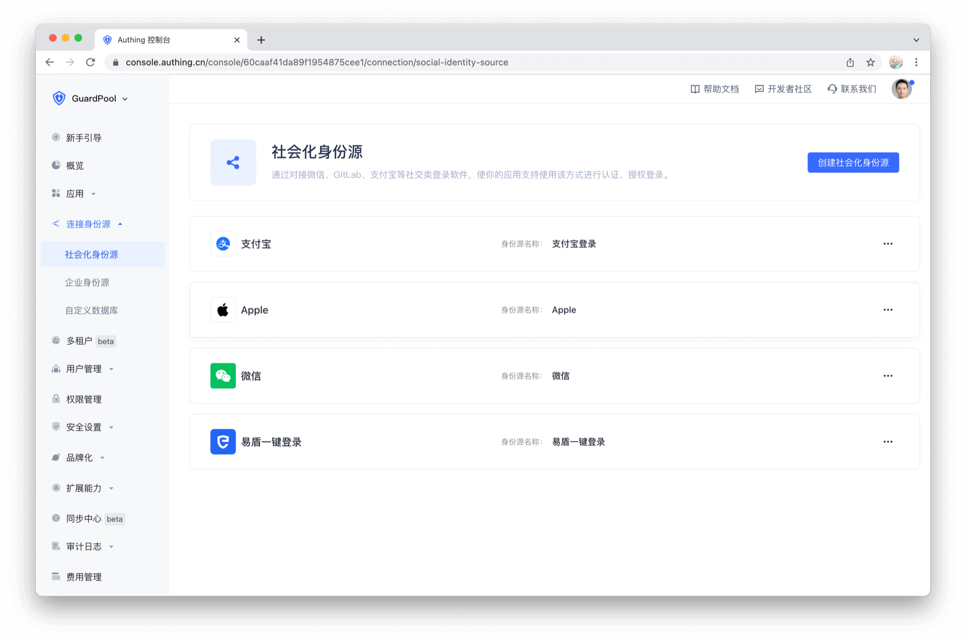 此组件根据控制台设置显示社会化登录源。用户点击图标时,拉起相应 App 完成认证。