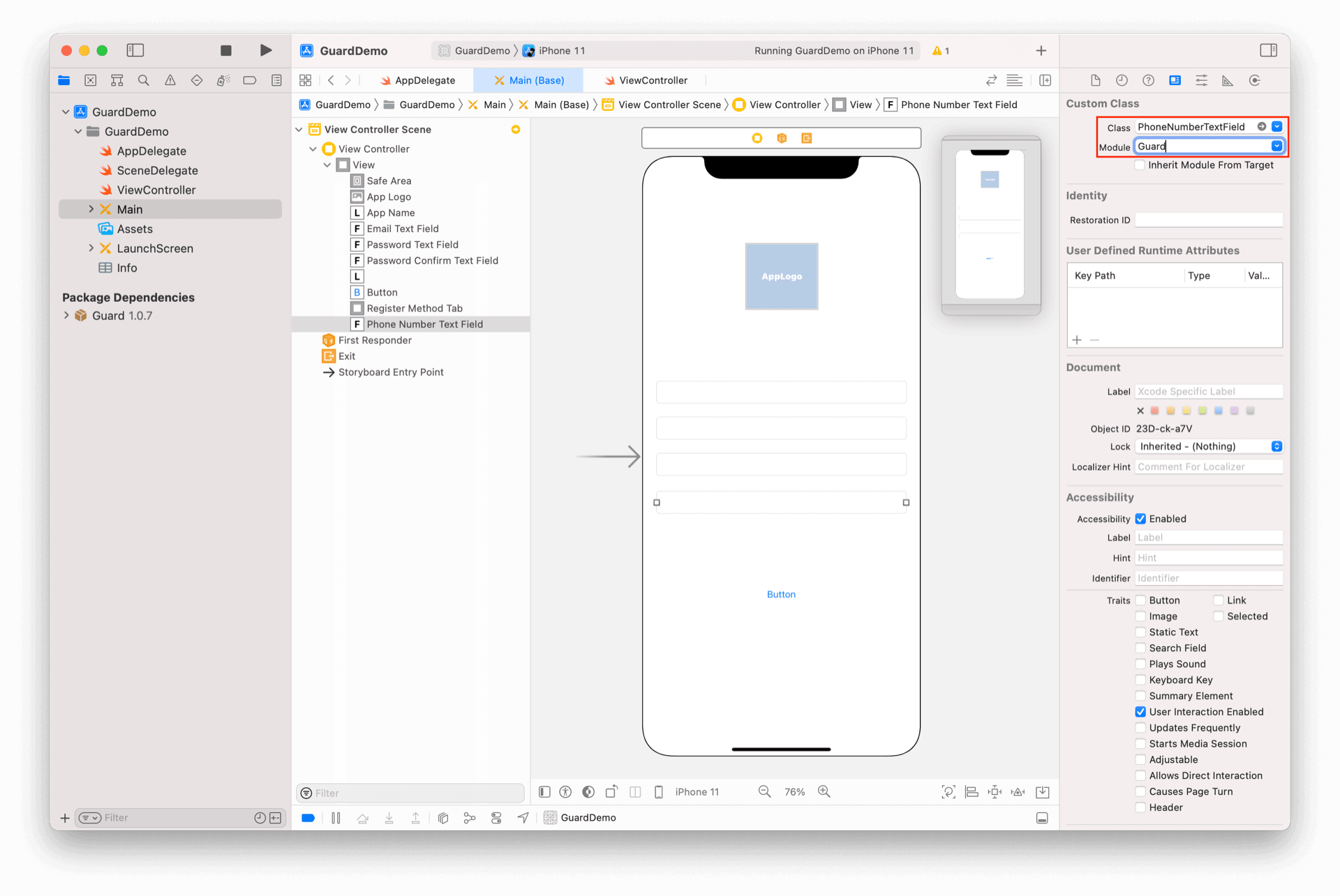 放置一个 TextField,将其类型改为 PhoneNumberTextField