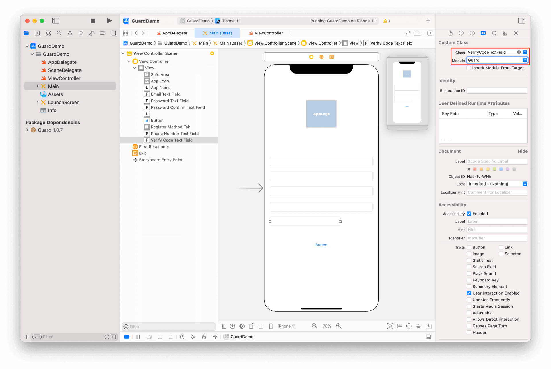 放置一个 TextField,将其类型改为 VerifyCodeTextField