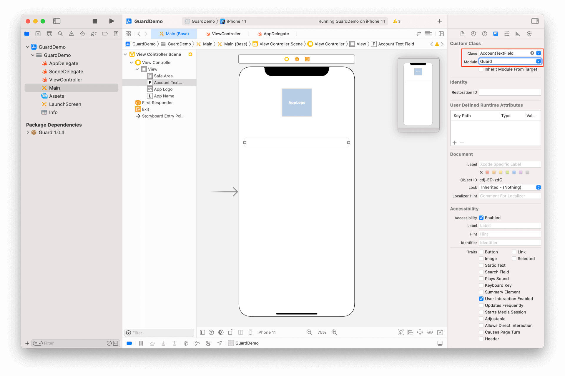 再放置一个 TextField,将其类型改为 PasswordTextField