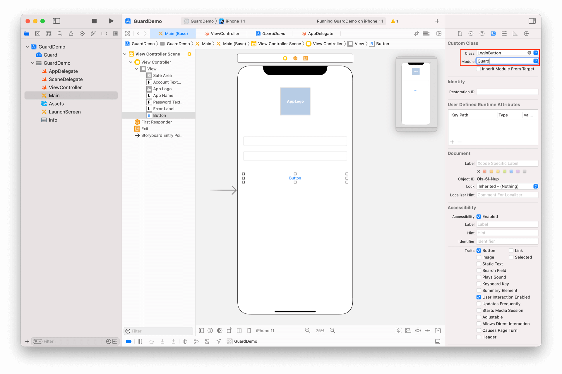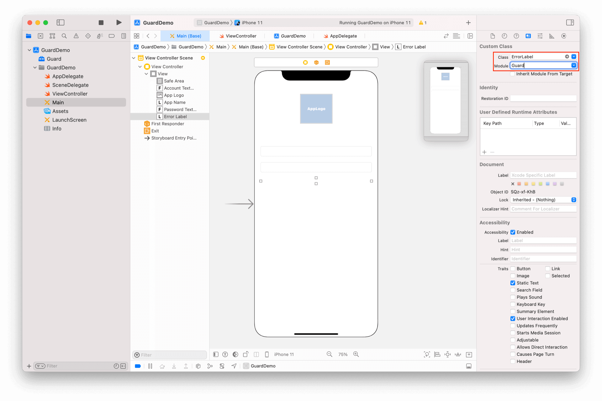 我们注意到界面是英文版本的,因为 iOS 默认只有英文版本的 Localization,并且模拟器默认也是英文版本的。Guard 支持中英文,我们只需要在项目配置里面添加中文即可: