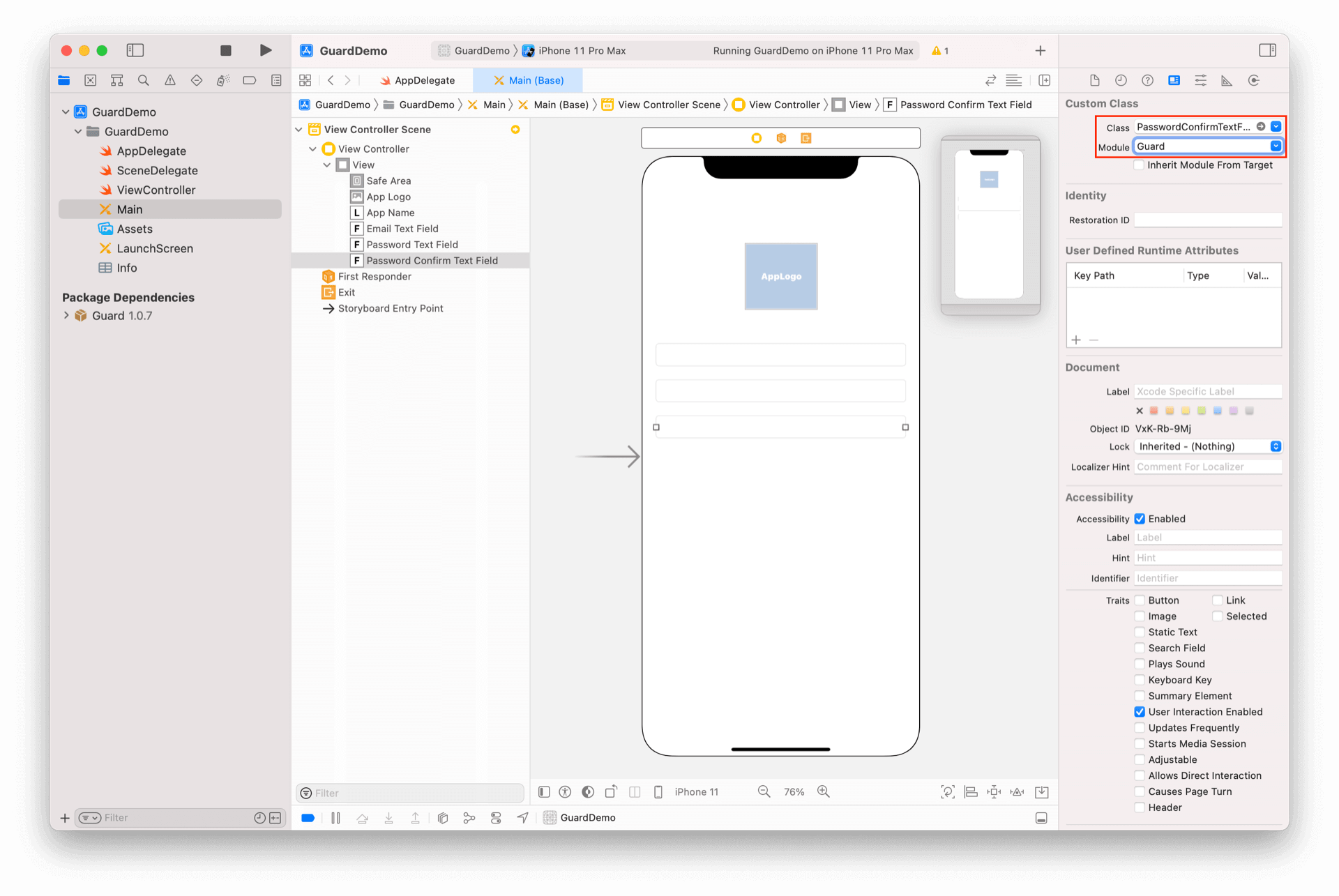 再放置一个 TextField,将其类型改为 PasswordTextField