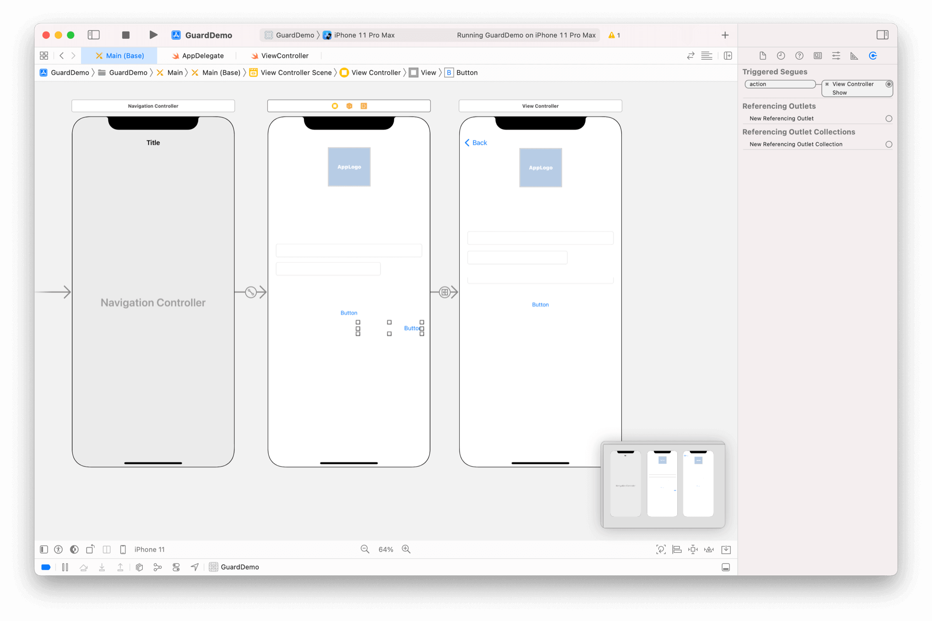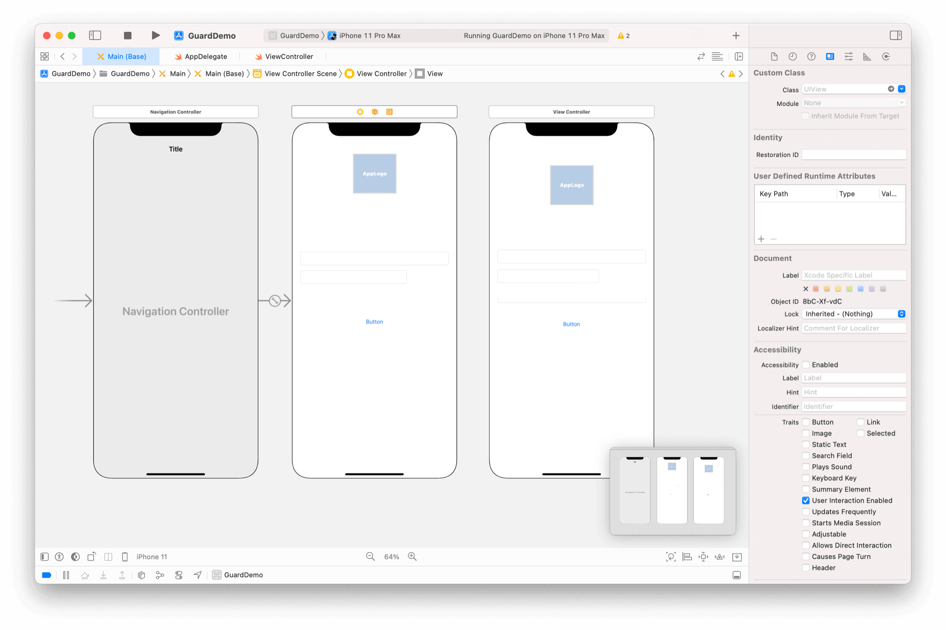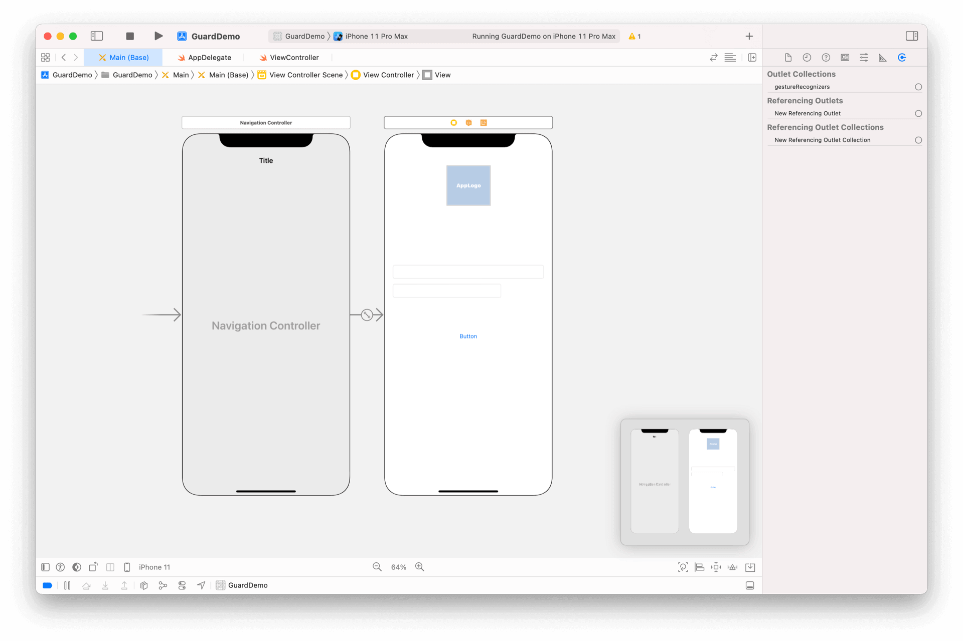 我们以登录示例为基础工程,首先在入口 ViewController 前面增加 NavigationViewController