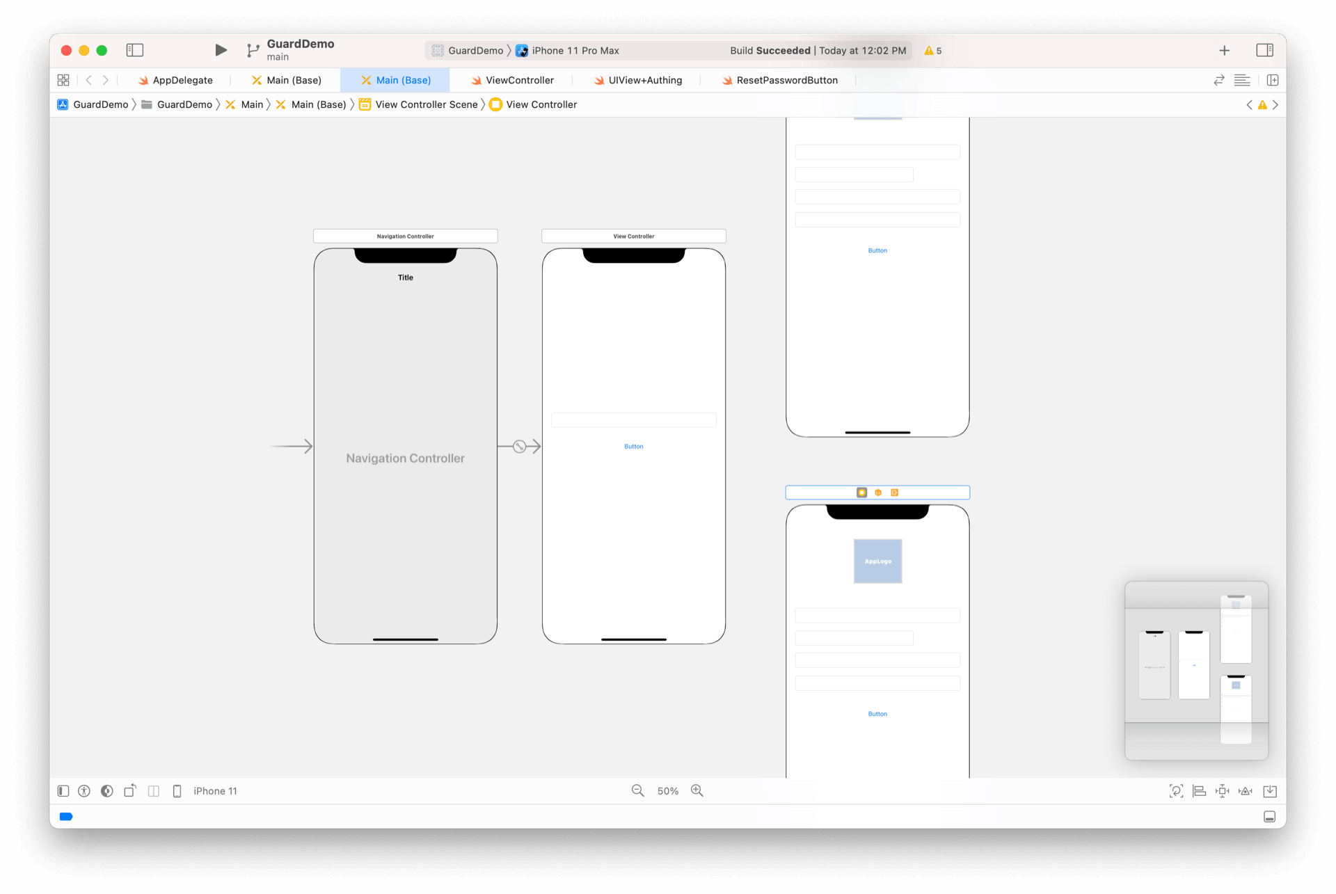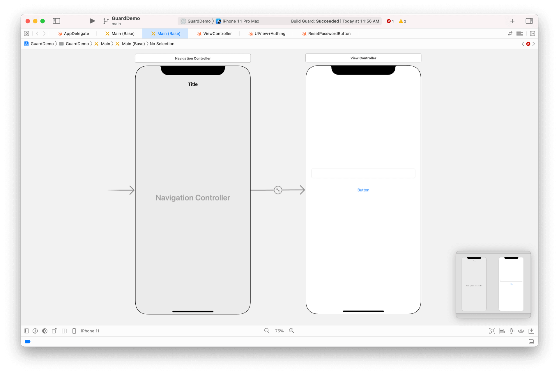 新增一个导航入口页面,放置 AccountTextField、ResetPasswordButton,如下图: