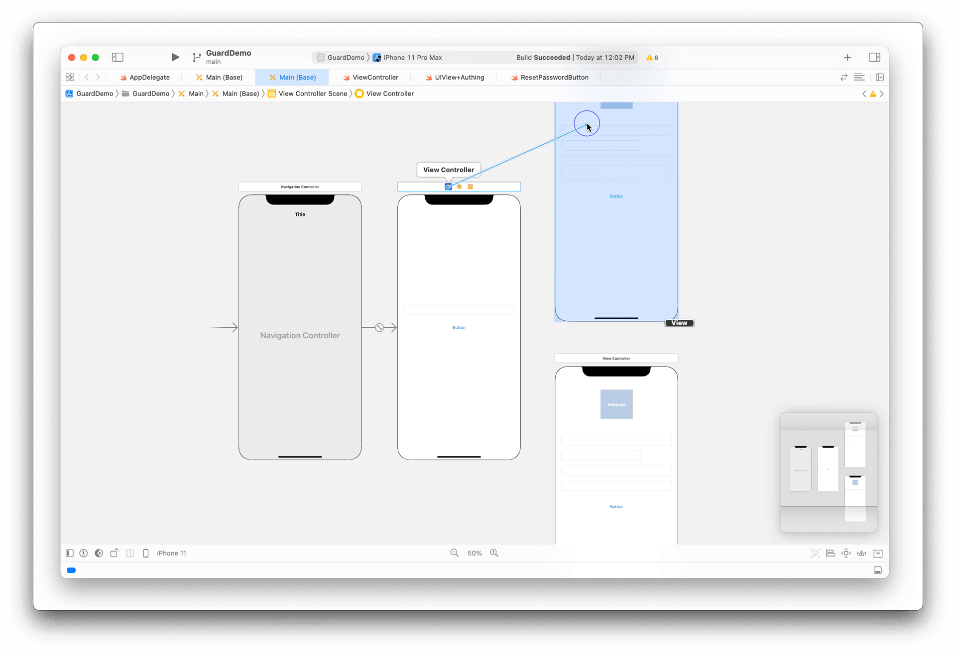 设置 ViewController 之间的 Segue 为 Show