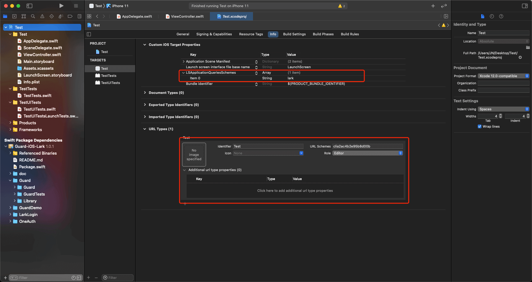 配置跳转 Scheme: LSApplicationQueriesSchemes Key 下添加 lark