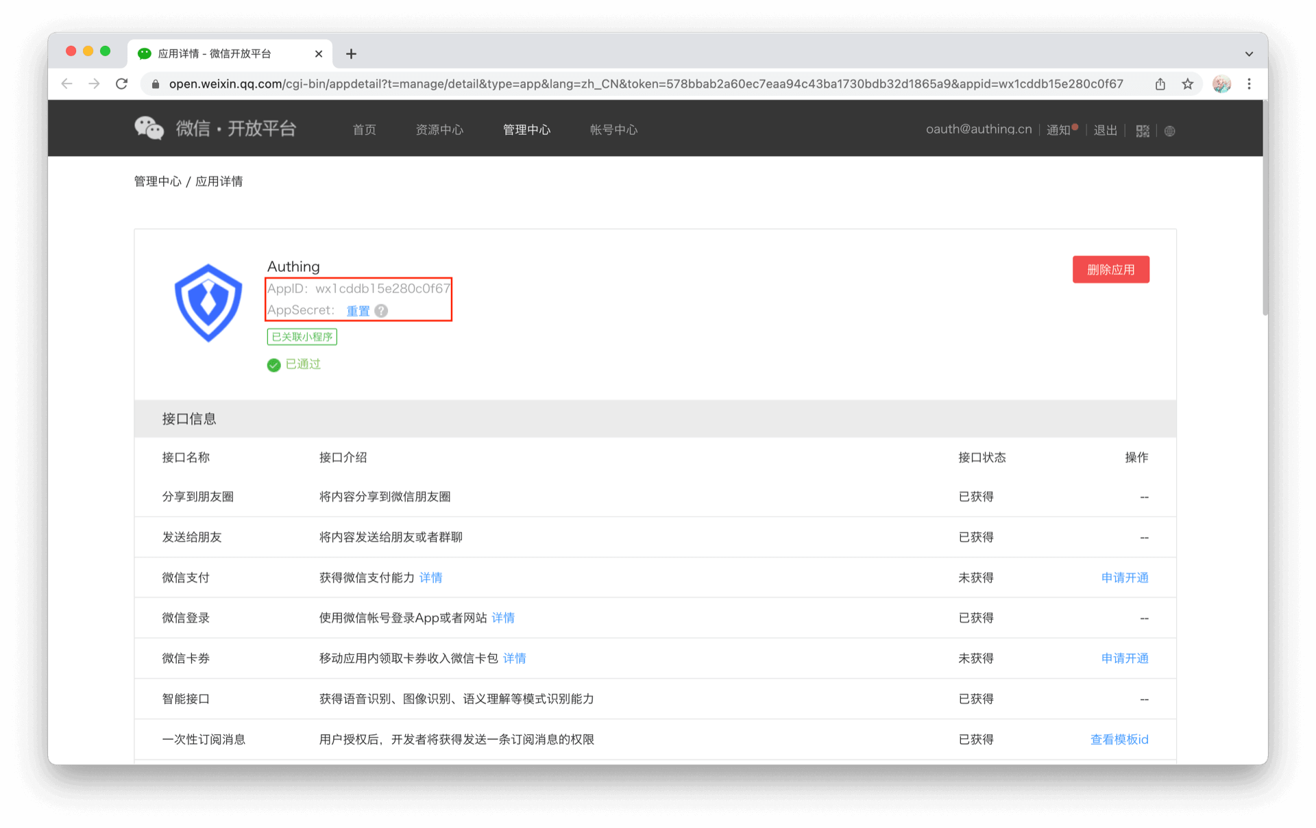 - 填入微信开放平台对应的 AppID 和 AppSecret