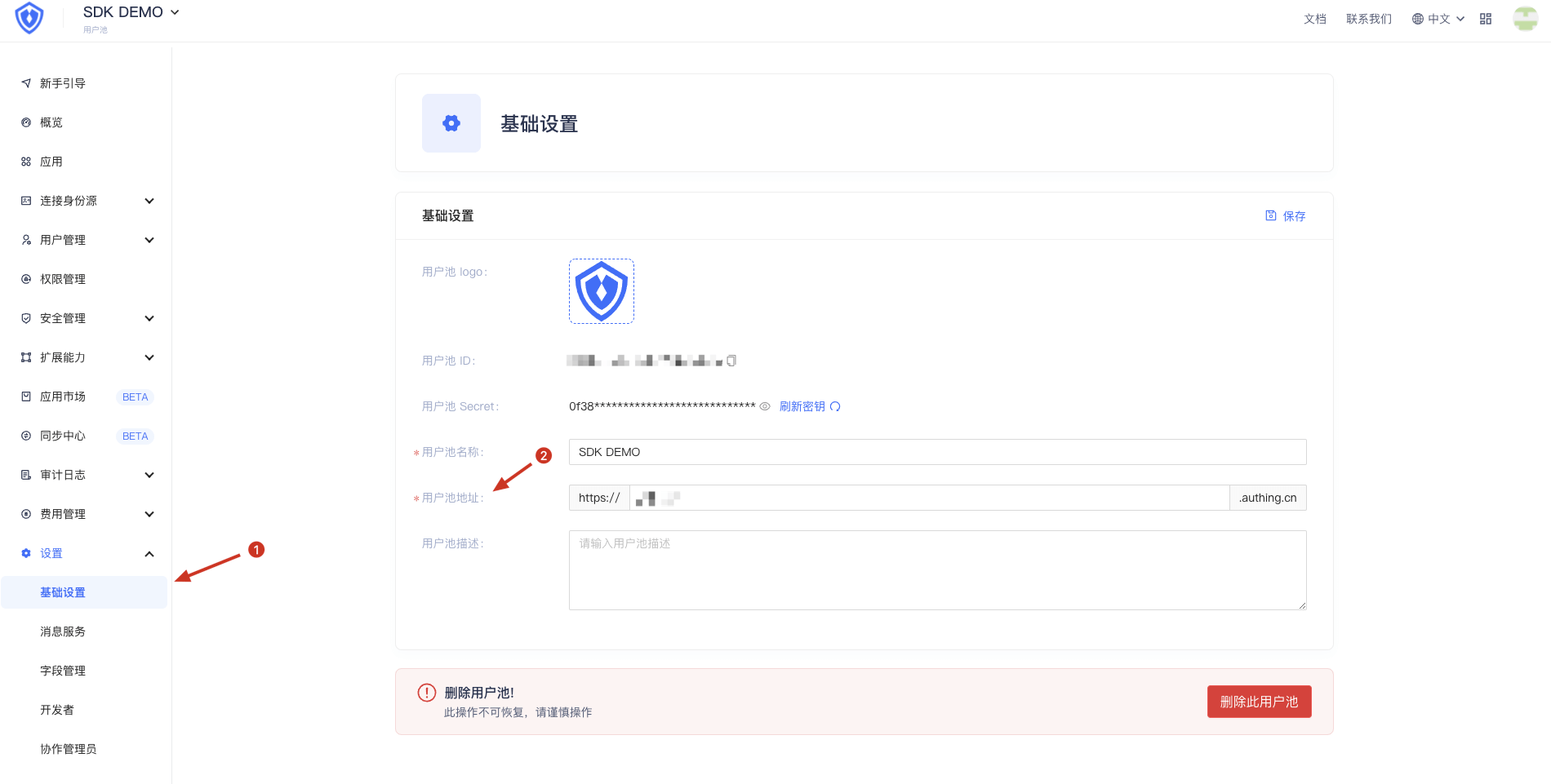 ¶ 用户池域名